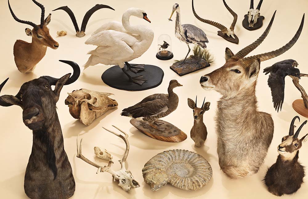 - Oddities – bones, skulls, shells, fossils, wet specimens, and fragments of natural history.